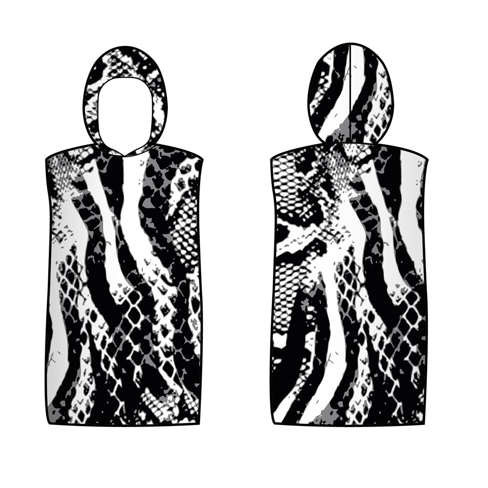 Microfibre Printed Surfer Changing Hoodie - Black & White Snake