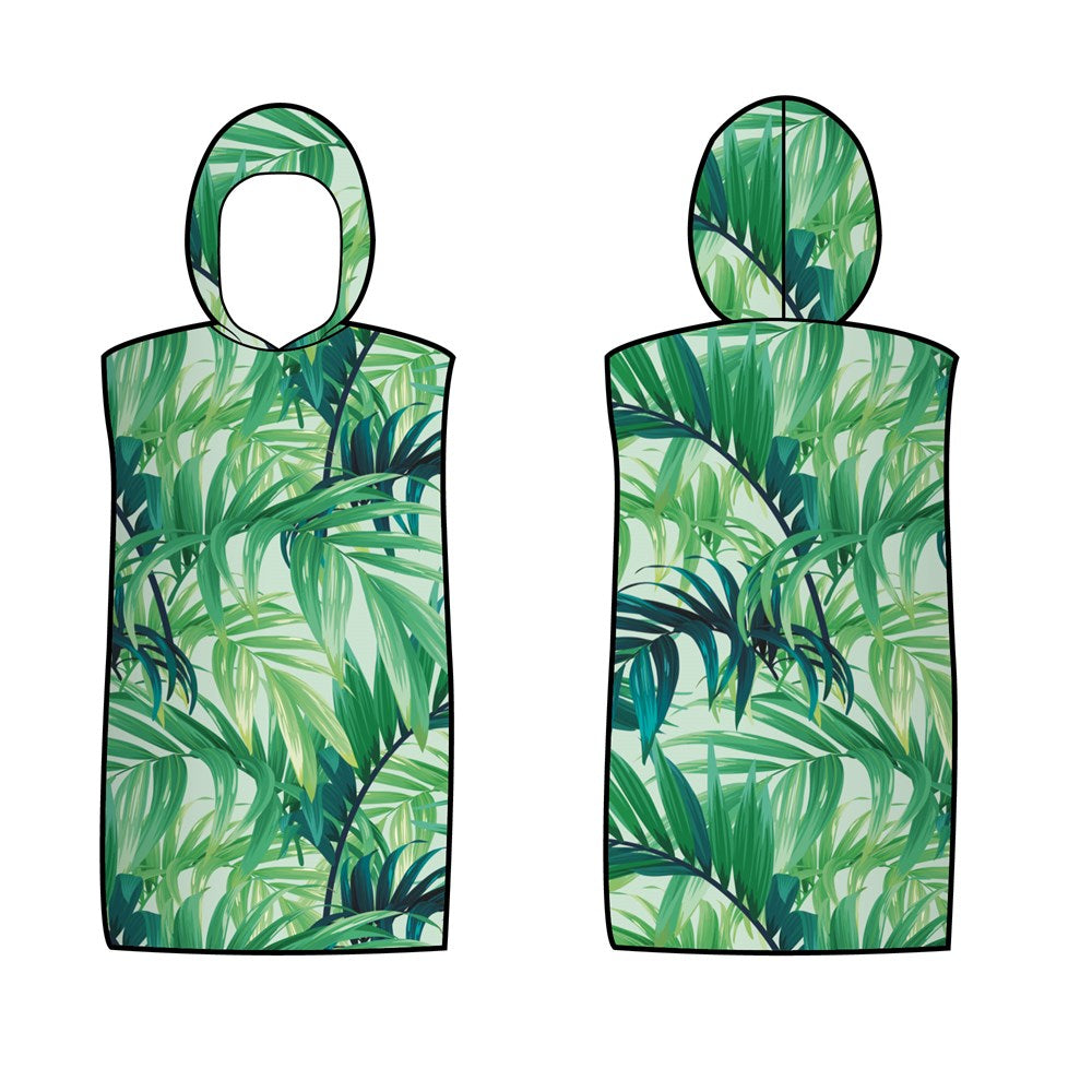 Microfibre Printed Surfer Changing Hoodie - Green & Turq Leaves