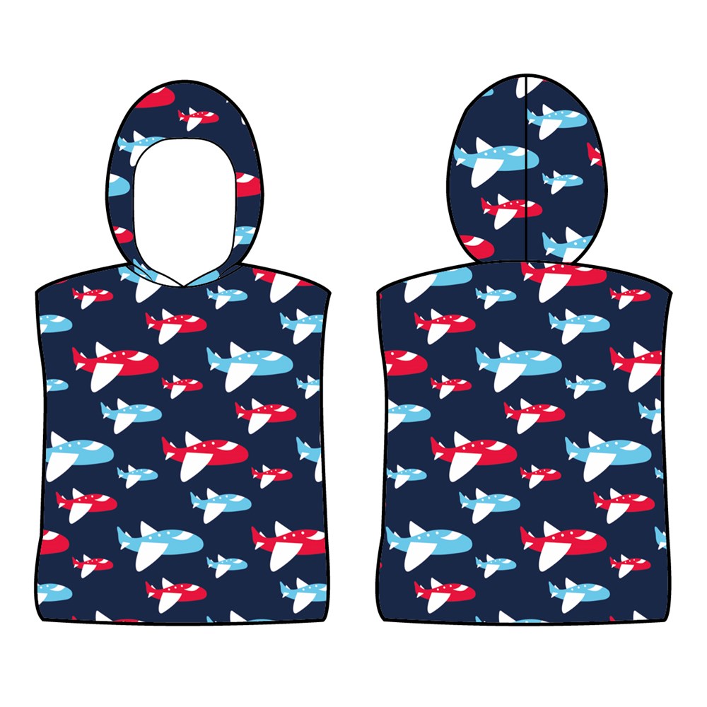 Microfibre Printed Kids Afterswim Hoodie - Aeroplanes
