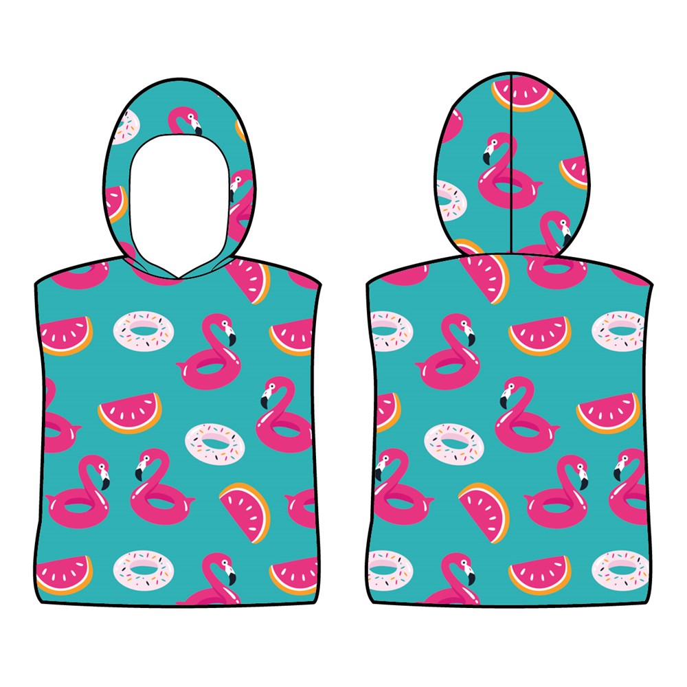 Microfibre Printed Kids Afterswim Hoodie - Flamingoes & Donuts