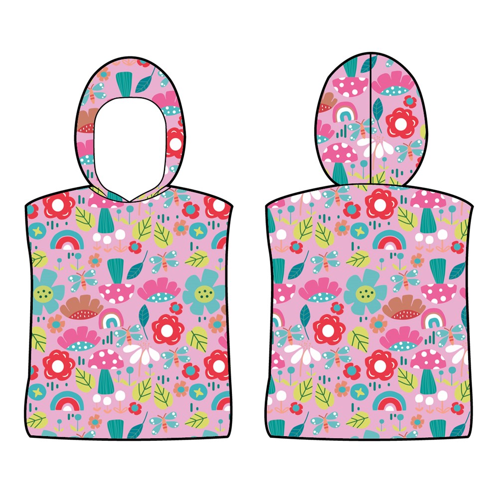 Microfibre Printed Kids Afterswim Hoodie - Rainbows & Mushrooms