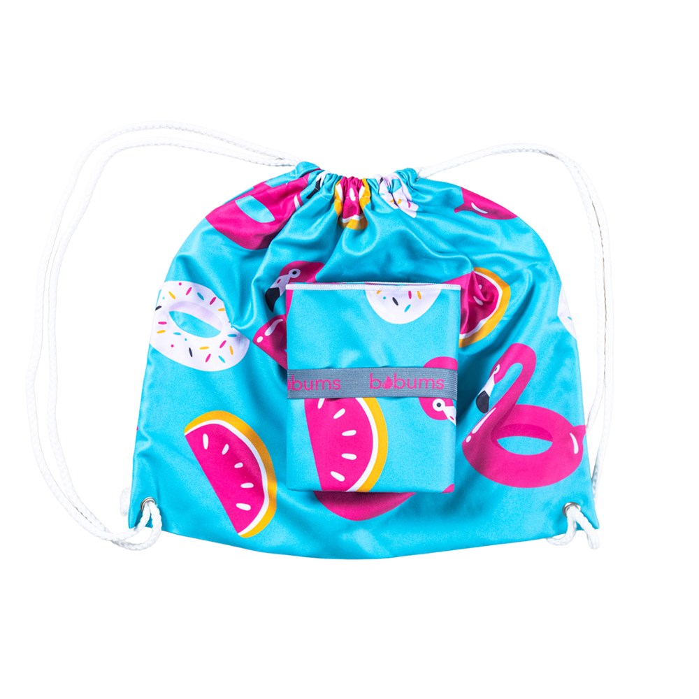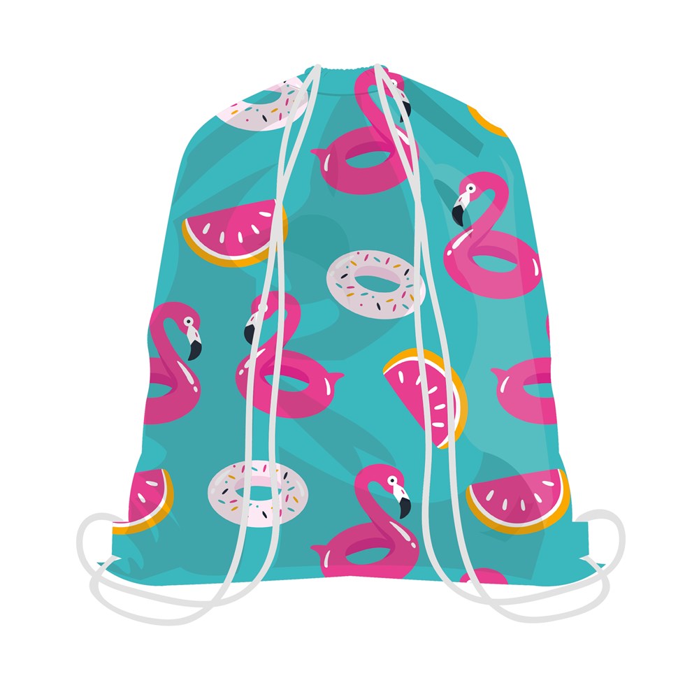 Microfibre L Printed Towel & Backpack Set - Flamingoes & Donuts