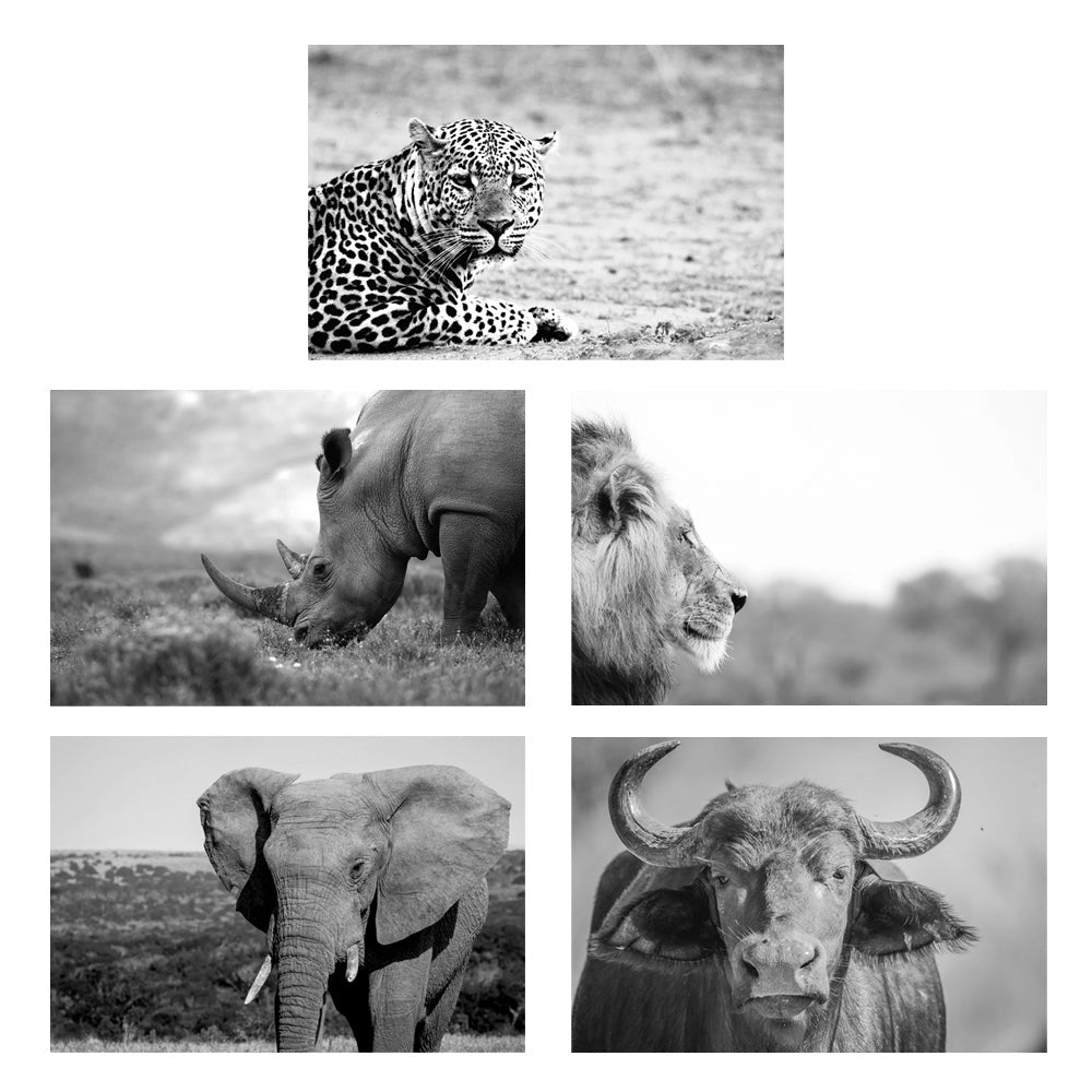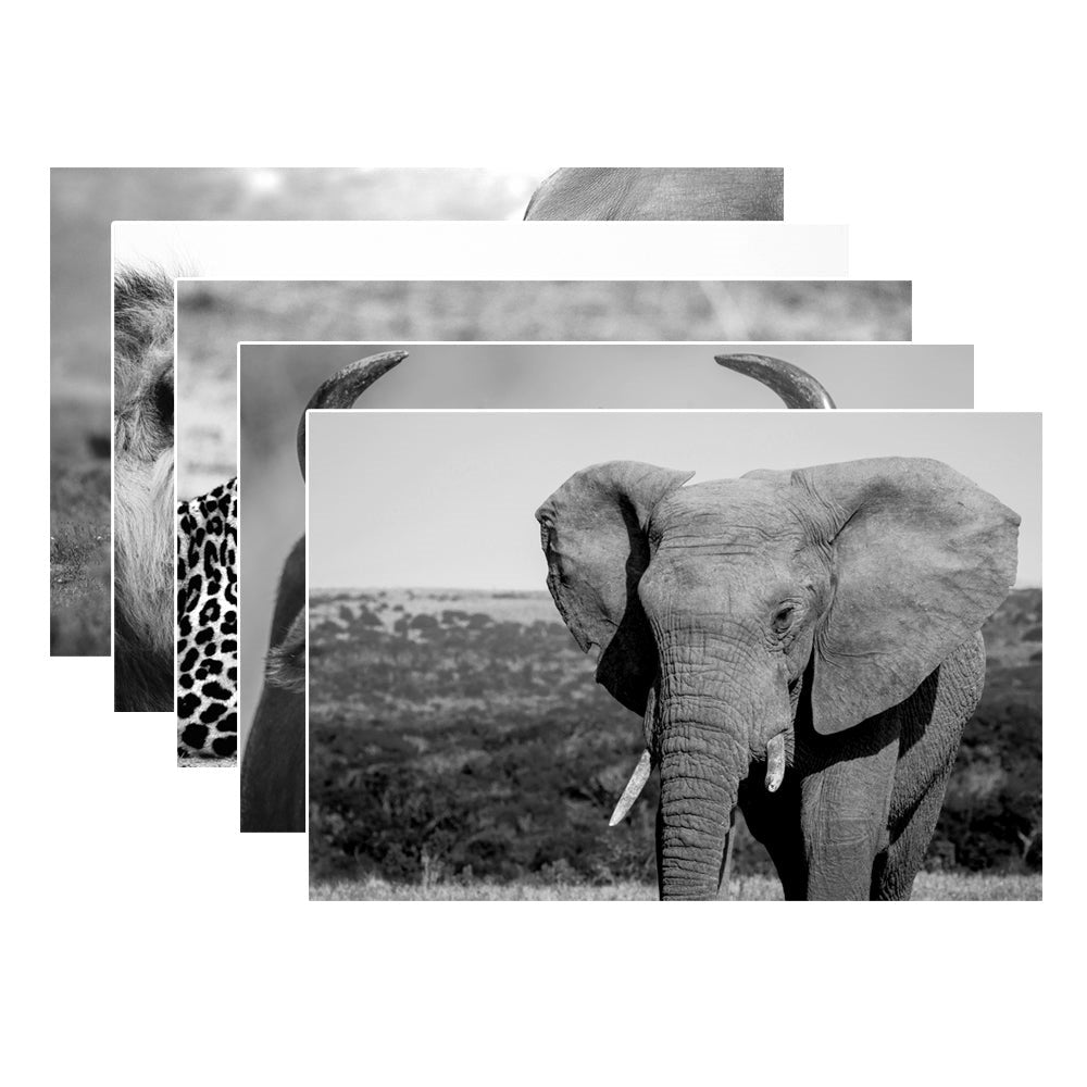 Microfibre Printed Tea Towel - Black & White Big 5 (5 pk)