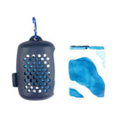 NEW NEW NEW!!! The perfect accessory for being - on the move! - BOBUMS CONVO PACK Silicone container with an attachable clip and a printed towel size 80 x 100cm - perfect to dry you where needed! Compact design - very compact, lightweight and easy to carry microfibre towel Machine washable - does not tear - resistant to repeated washing Quick drying - microfibre dries very quickly after use Absorption - very effective in drying the body due to its high absorption properties Composition - main fabric 88% polyester / 12% polyamide Easy to clean and use silicone container - perfect to carry the towel around while clipped to a bag / backpack Towels are 100% recycled.