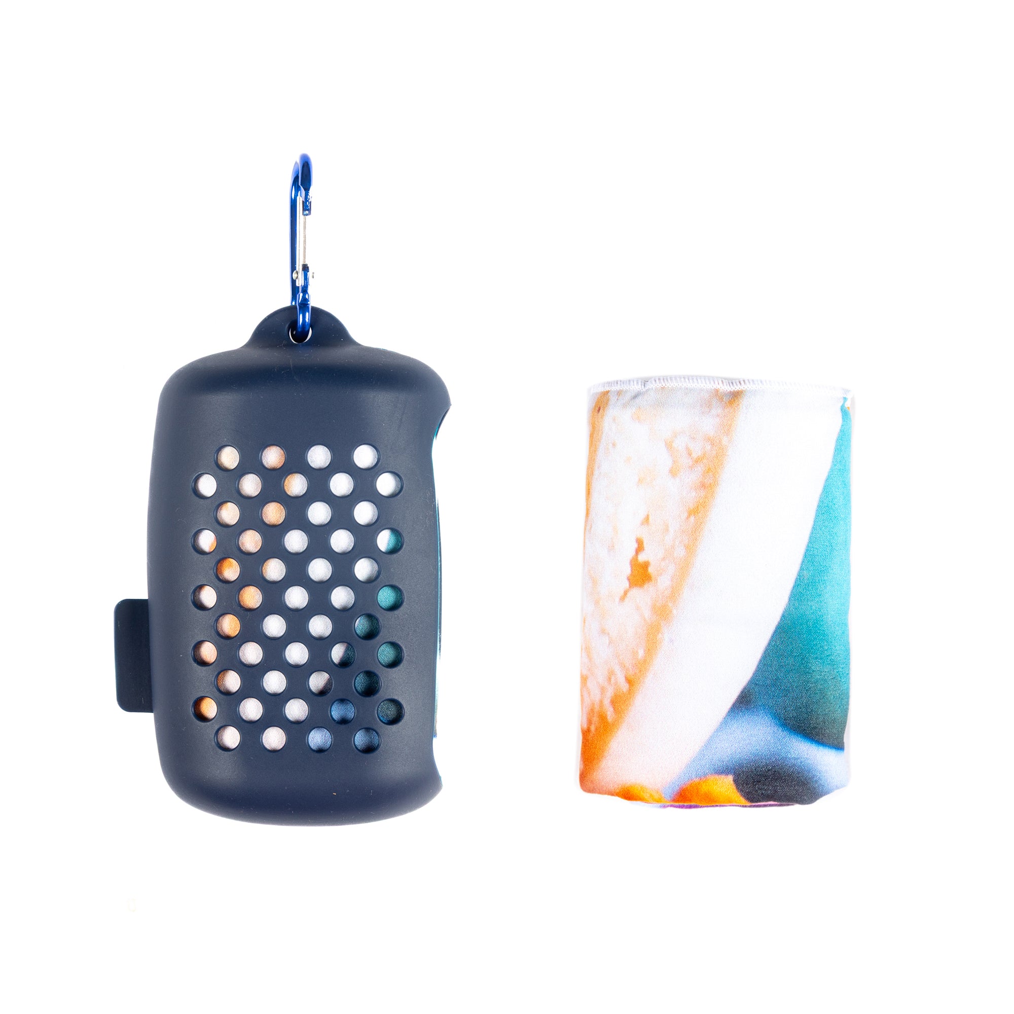 NEW NEW NEW!!! The perfect accessory for being - on the move! - BOBUMS CONVO PACK Silicone container with an attachable clip and a printed towel size 80 x 100cm - perfect to dry you where needed! Compact design - very compact, lightweight and easy to carry microfibre towel Machine washable - does not tear - resistant to repeated washing Quick drying - microfibre dries very quickly after use Absorption - very effective in drying the body due to its high absorption properties Composition - main fabric 88% polyester / 12% polyamide Easy to clean and use silicone container - perfect to carry the towel around while clipped to a bag / backpack Towels are 100% recycled.