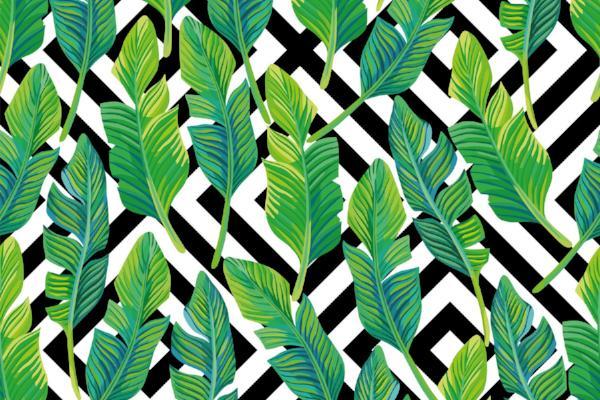 Microfibre XL Printed Towel - Banana Leaves / Black Squares