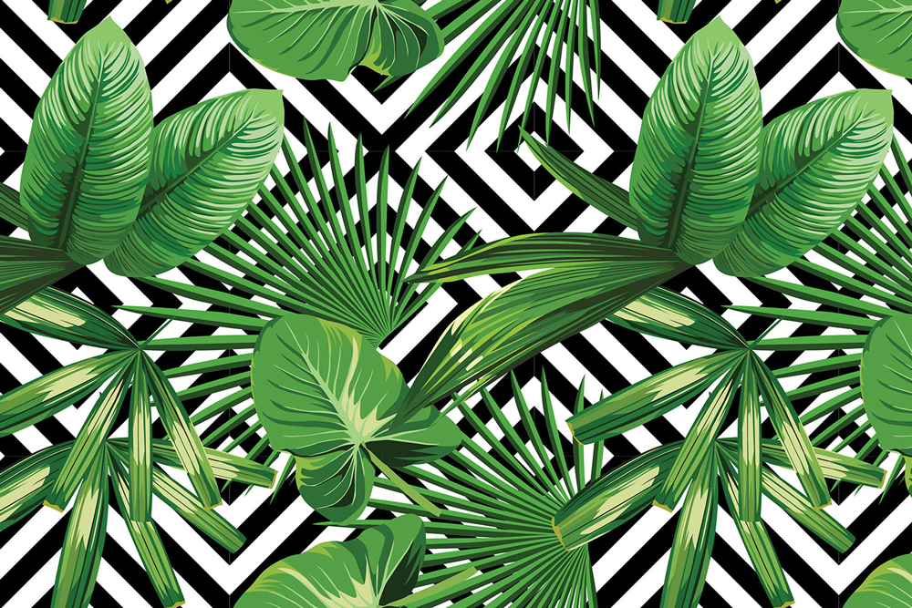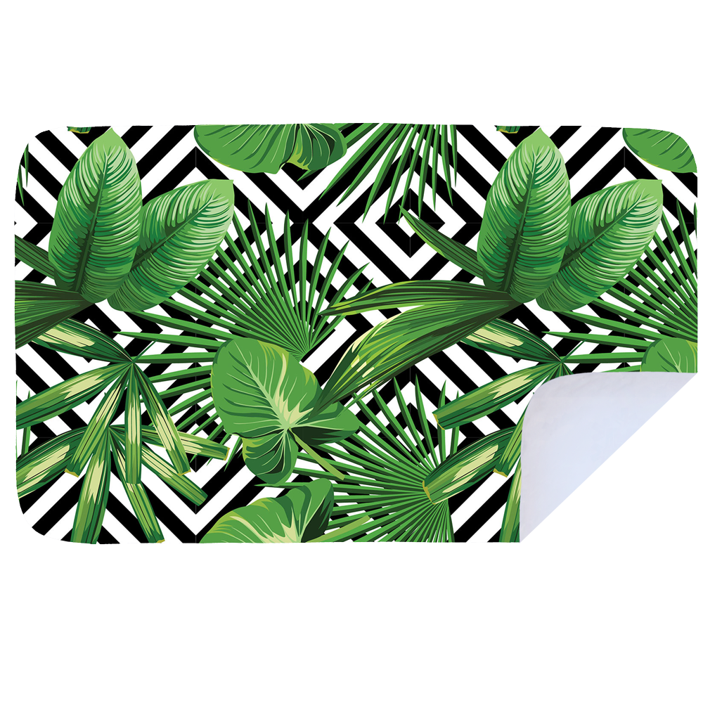 Microfibre XL Printed Towel - Green Leaves / Black Pattern