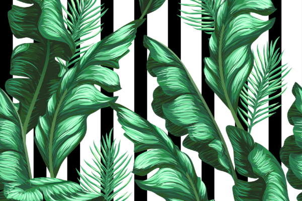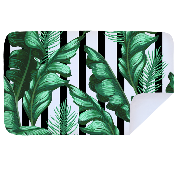 Microfibre XL Printed Towel - Green Leaves / Vertical Stripes