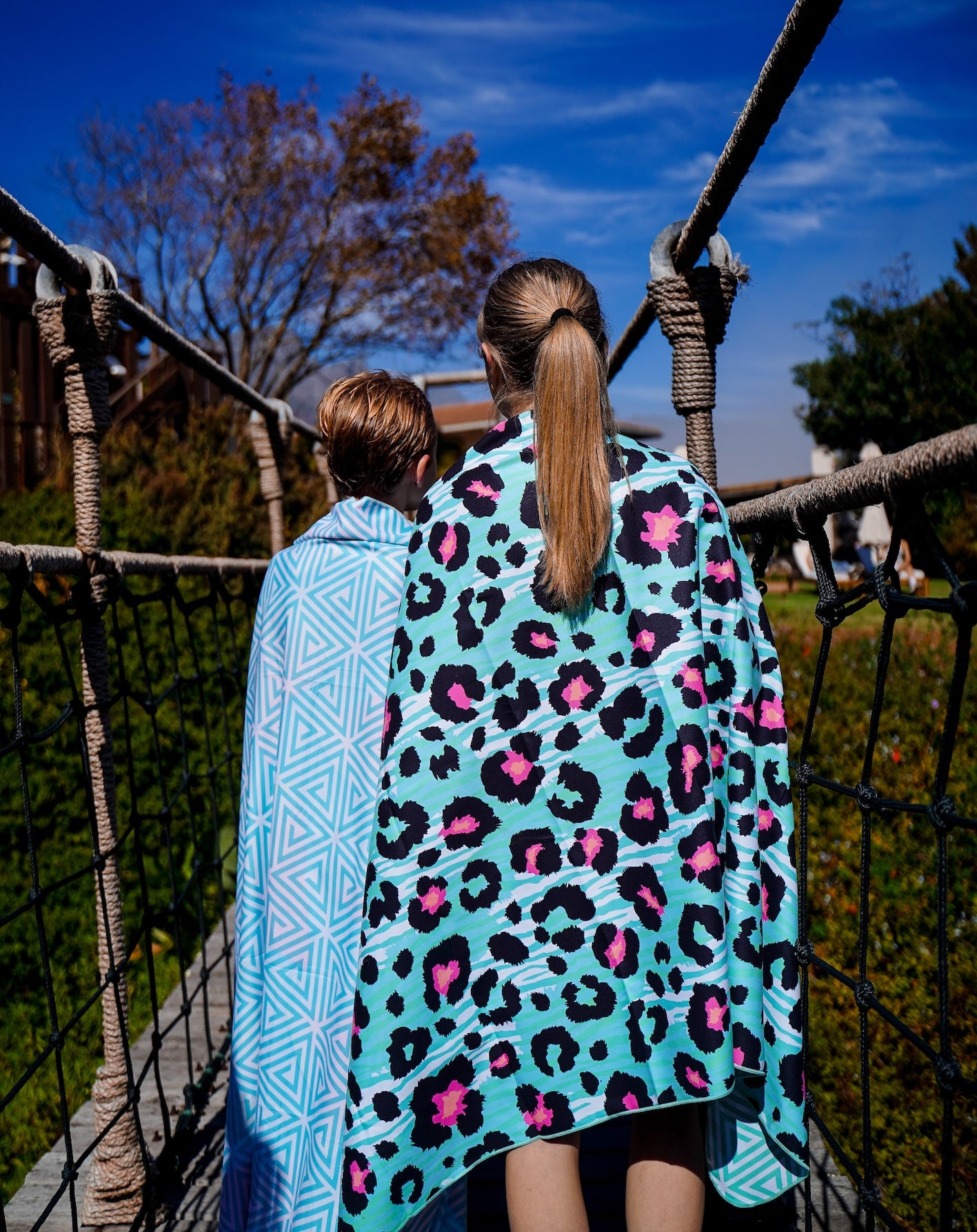Microfibre XL Double Sided Printed Towel -Aqua Leopard Stripe