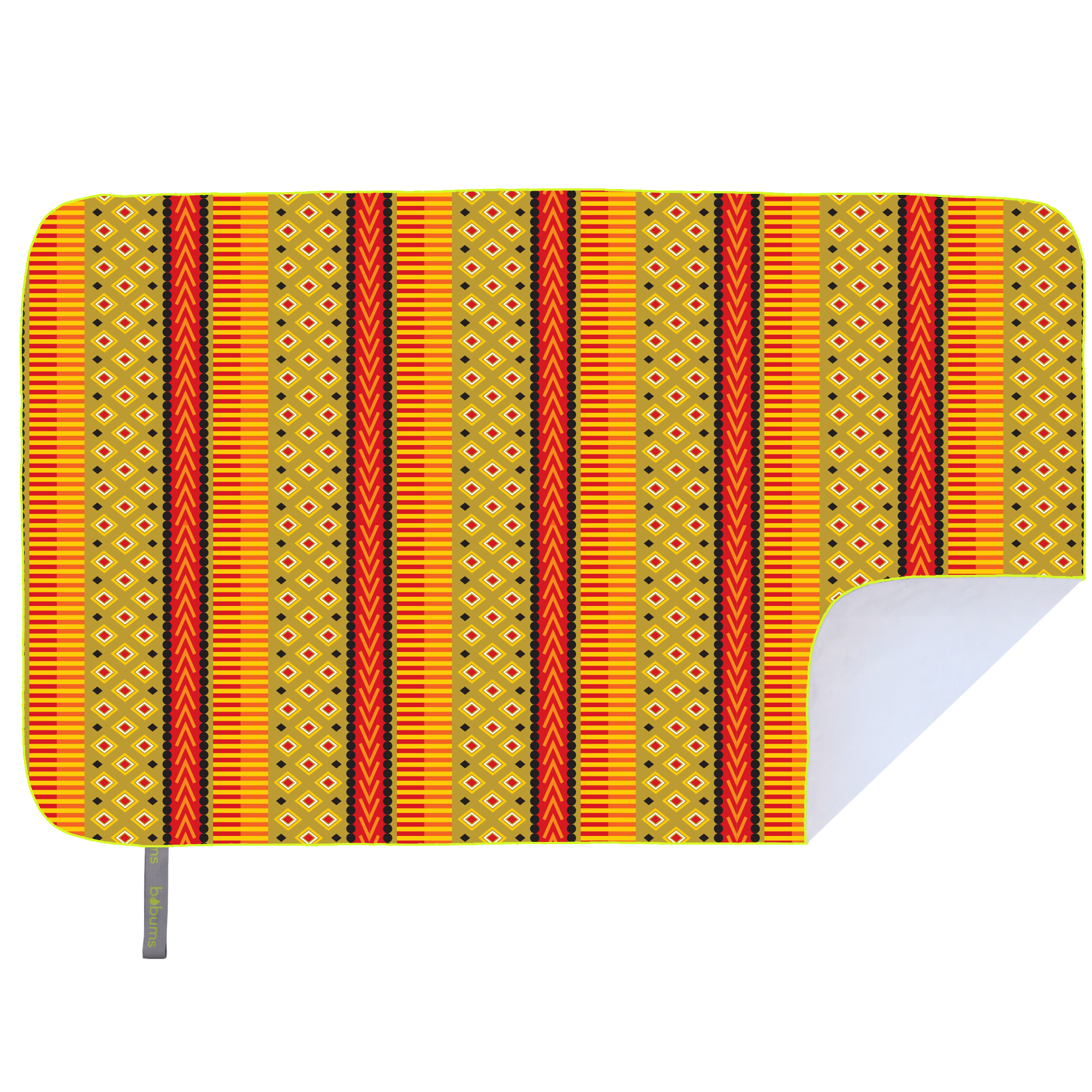 Microfibre XL Printed Towel - Shweshwe Orange Stripes / Yellow trim
