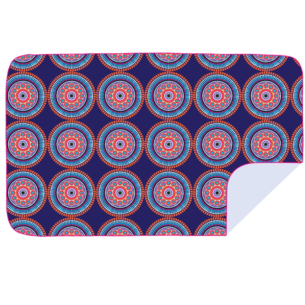 Microfibre XL Printed Towel - Shweshwe Purple Pink rounds / lumo pink