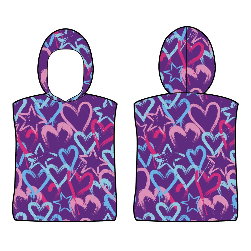 Microfibre Printed Kids Afterswim Hoodie - Purple Hearts