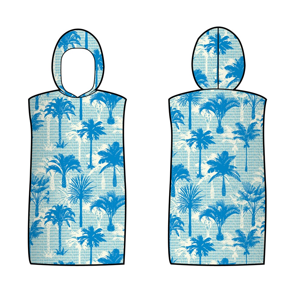 Microfibre Printed Surfer Changing Hoodie - Blue Palm Paradise