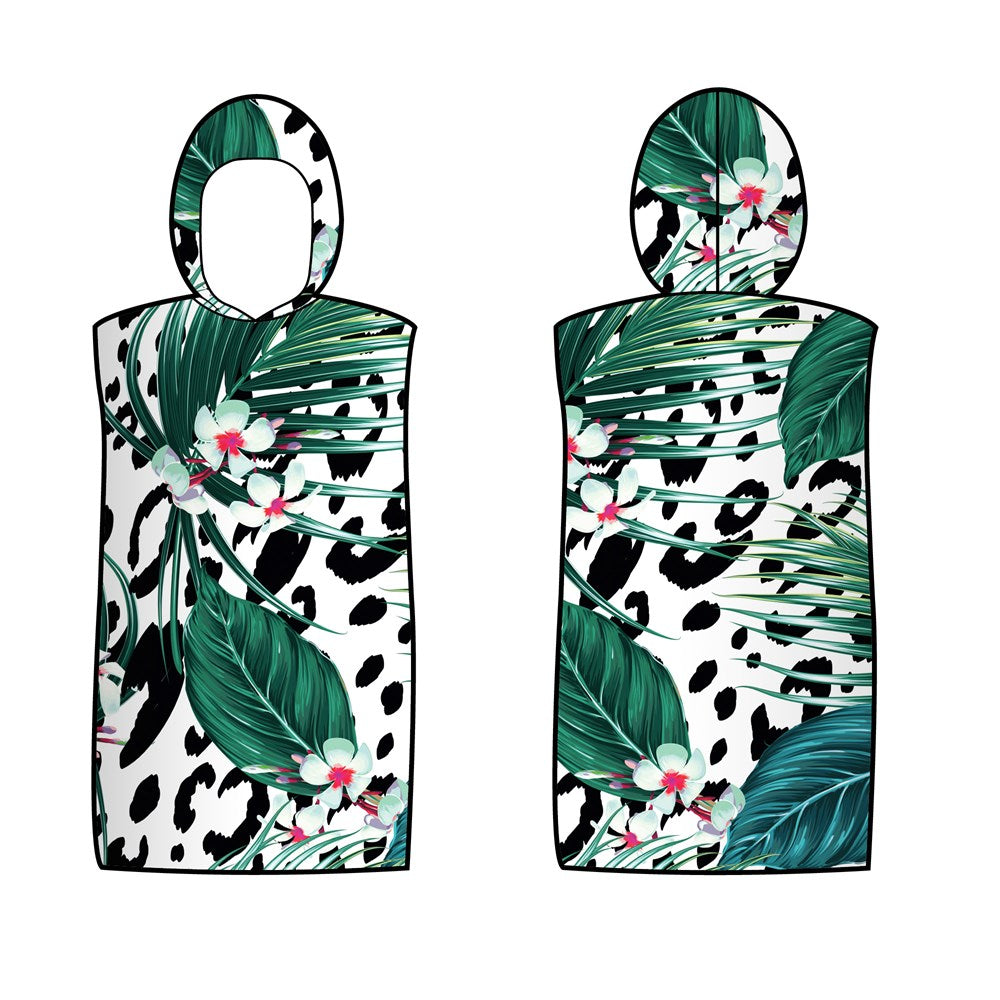 Microfibre Printed Surfer Changing Hoodie - Green Leaves Leopard