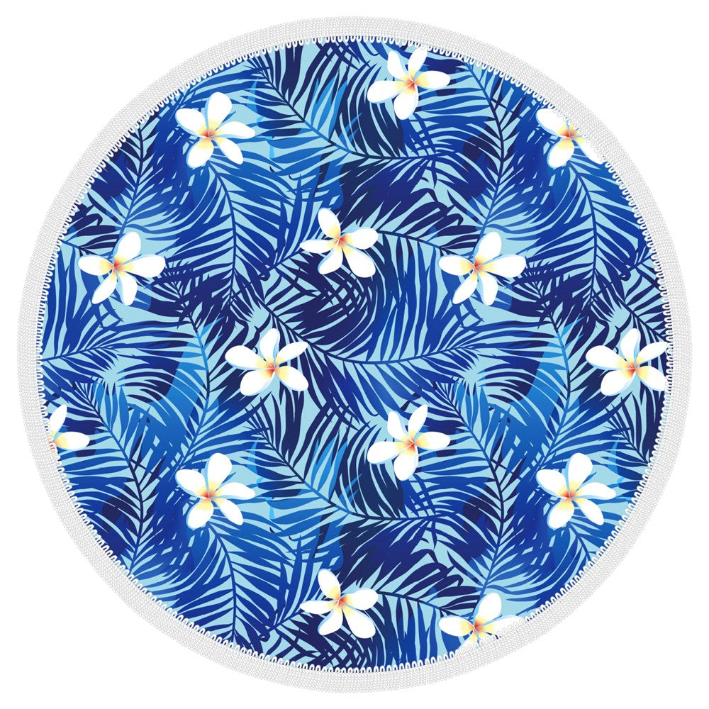 Microfibre Round Printed Towel - Blue Hibiscus