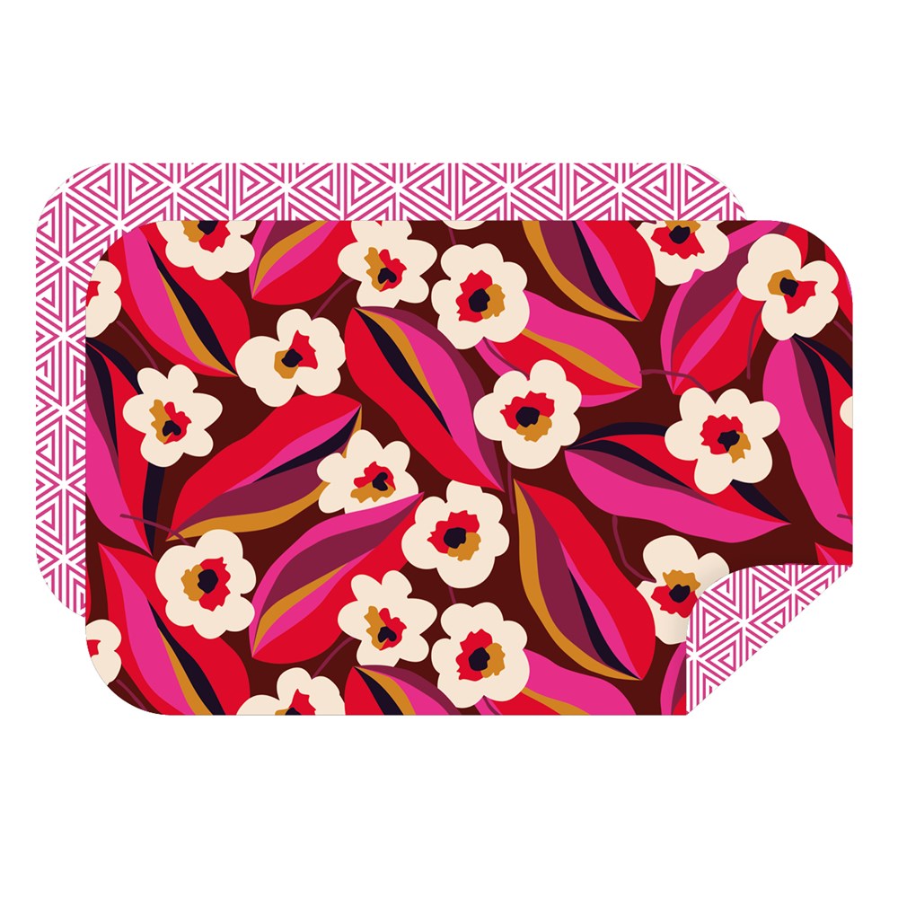 Microfibre XL Double Sided Printed Towel - Pink Leaves Cream Flowers